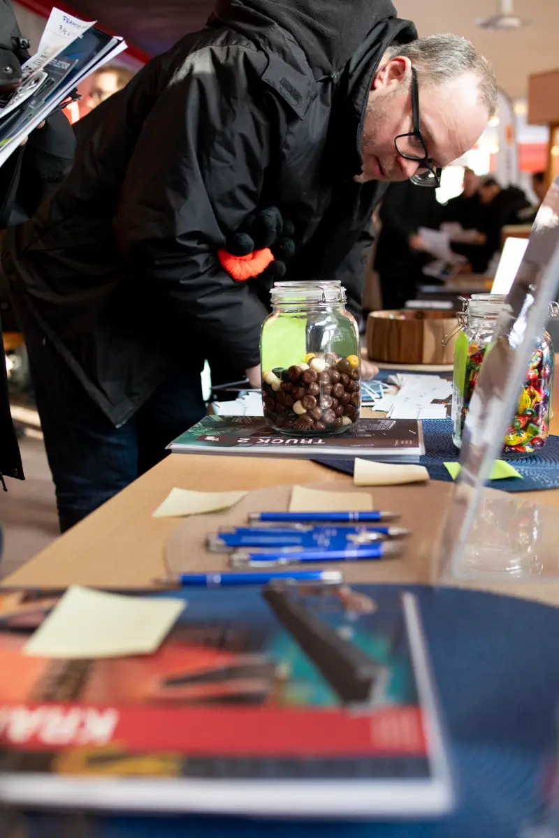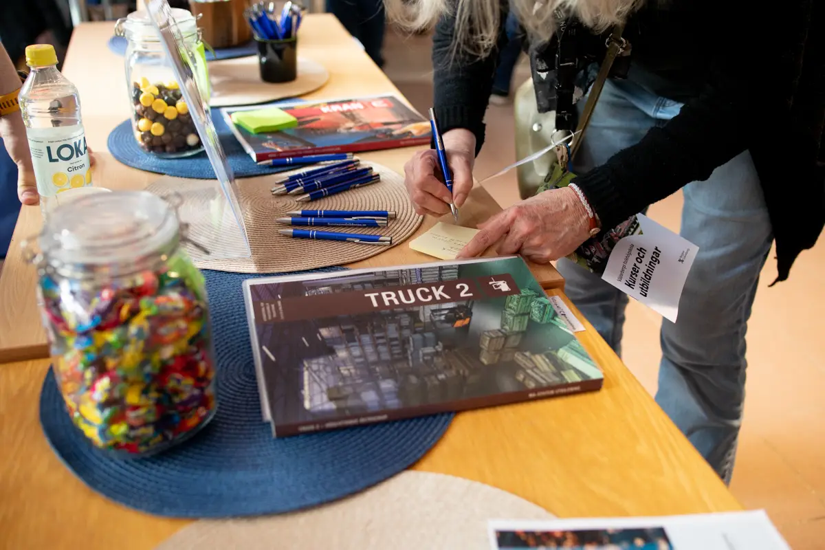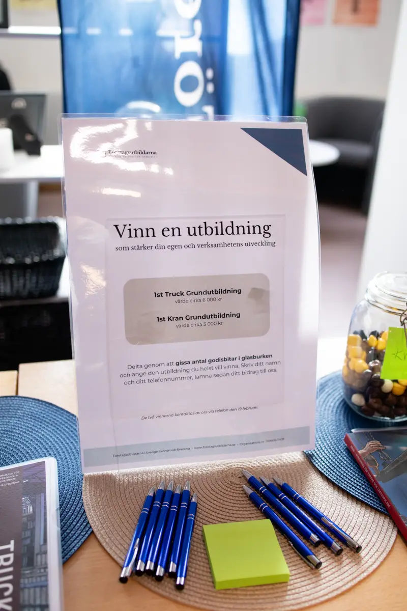 Vi hade också en uppskattad tävling där besökare fick gissa antalet godisbitar i våra glasburkar. Vinsterna bestod av en truck grundutbildning och en kran grundutbildning, vilket gav två deltagare chansen att ta ett steg vidare i sin kompetensutveckling.