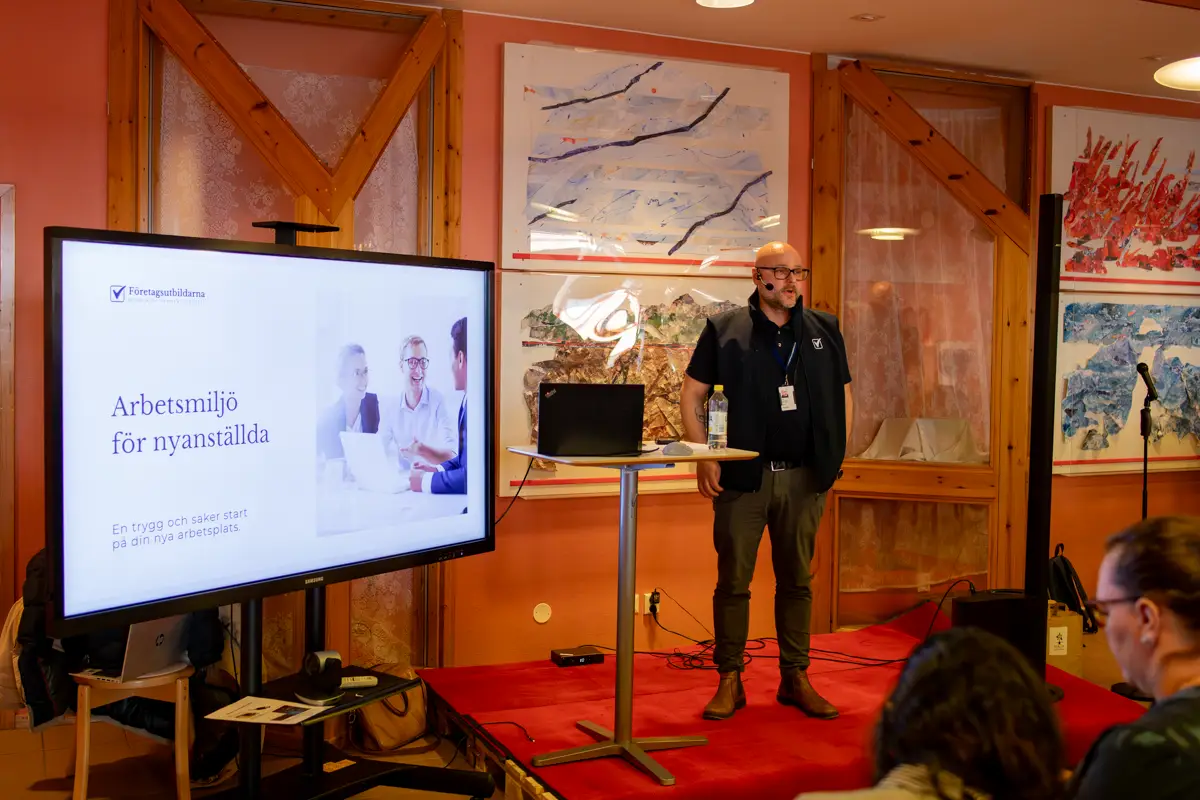Under dagen höll vår affärsområdeschef Emil dessutom en 20 minuter lång presentation om arbetsmiljö för nyanställda. Presentationen gav en tydlig bild av hur en trygg och säker start på en ny arbetsplats skapar goda förutsättningar för både individ och verksamhet. Intresset var stort, och många deltog för att få nya insikter och inspiration.